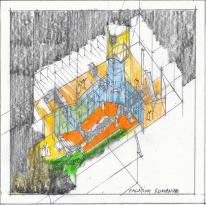 Tanulmánytervek készítésével sikerült meggyőzni a döntéshozókat arról, hogy át kell helyezni a boronafából épült Szarvasházat a Madárház tengelye által kijelölt szabad területre, így Kós egyik legjellegzetesebb épülete megmaradhatott az utókor számára!